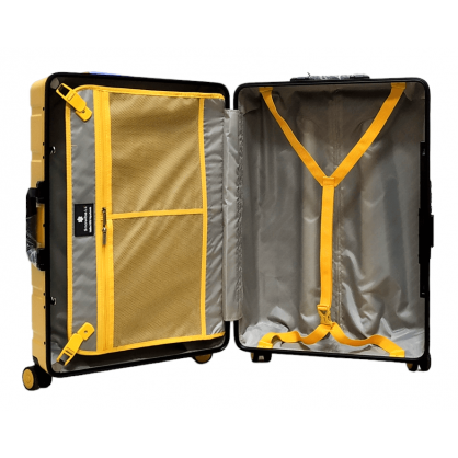 -Усередині валіз є 2 відділення, одне з внутрішніми ременями кріплення багажу, інше закривається на блискавку.