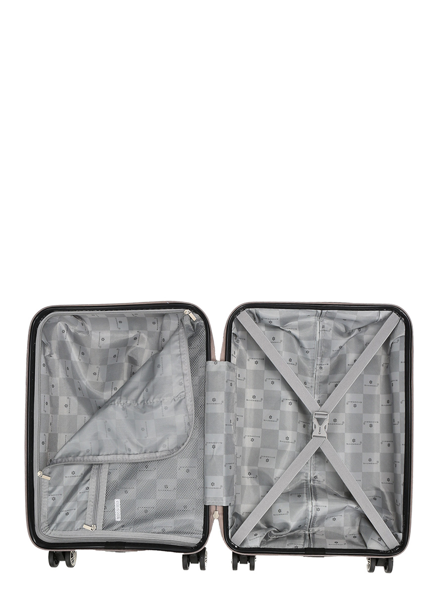 - Усередині валізи є два відділи: одне з яких закривається на блискавку і має додаткові сітчасті кишені, а інше оснащене ременями для фіксації багажу.