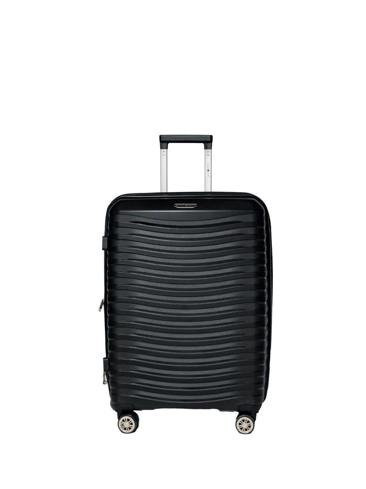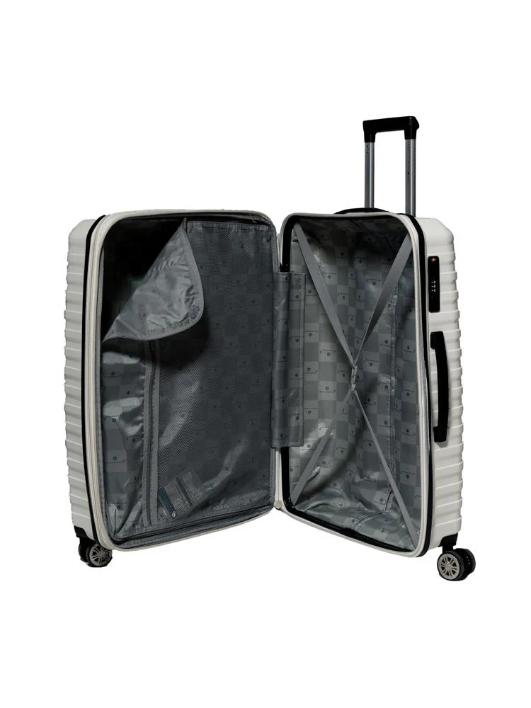 - Валіза виготовлена з міцного поліпропілену — матеріалу, що часто використовується у виробництві високоякісних валіз. Він відрізняється гнучкістю та стійкістю до механічних ушкоджень, що підтверджено численними тестами у Франції.